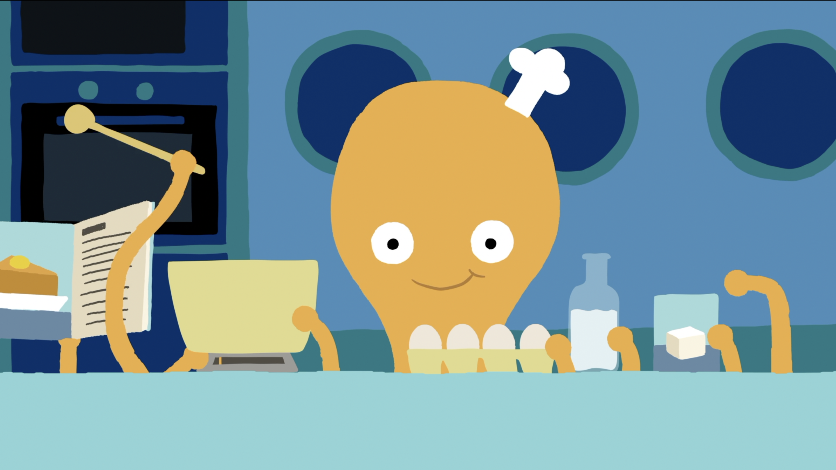 Octopus wants to bake a cake that looks exactly like it does in the recipe book. But one of her arms has plans of its own.